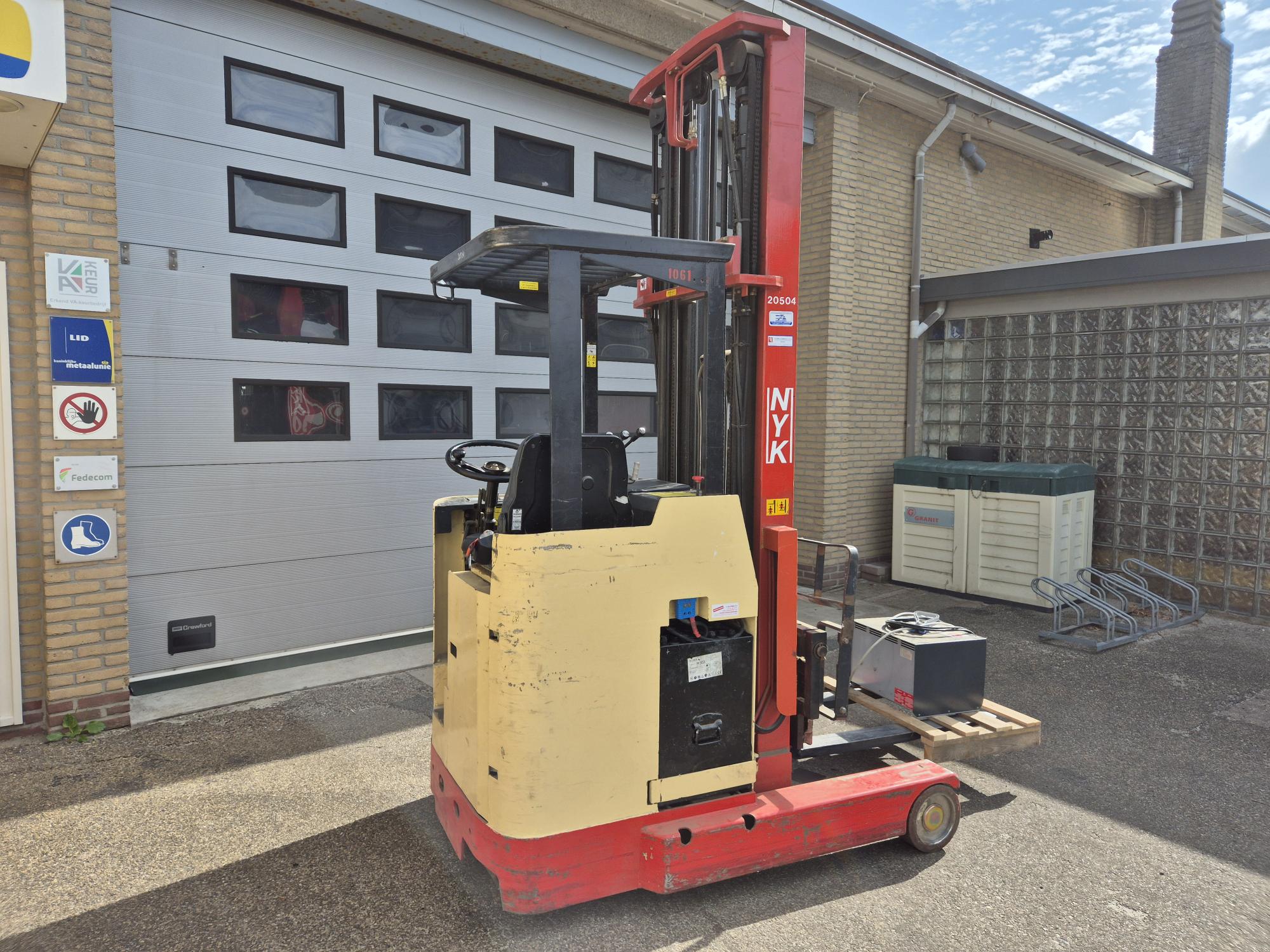 Home » Alle producten » Toyota Heftruck FBRF-15-50SB-670 (1061) Merk: Nyk – Reachtruck (zknr. 1061) Type: FBRF-15-50SB-670 Mast: 3 delig Hefhoogte: 6700mm Side-shift Vorkenlengte 1150mm Accu 48V / 375Ah (80%) Acculader 18V / 50Amp. 220V € 3.500,00 ex. btw Anderen bekeken ook: Toyota Heftruck Traigo48 (1068)€ 10.500,00 ex. btw Toyota Heftruck FBMF16 (992)€ 6.250,00 ex. btw BT Pompwagen: – 708€ 1.950,00 ex. btw Lafis pallettruck: LEH16T€ 1.950,00 ex. btw << Terug naar producten Delen